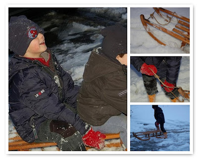 Met de dooi in het vooruitzicht gooiden we alle plannen om, verlieten ons vlakke veldenland en trokken naar oma en opa Landen, waar de hellingen steil zijn en de slee naar beneden roetsjt. Meteen goed voor veel plezier, geschater, rode wangen en koude voeten.